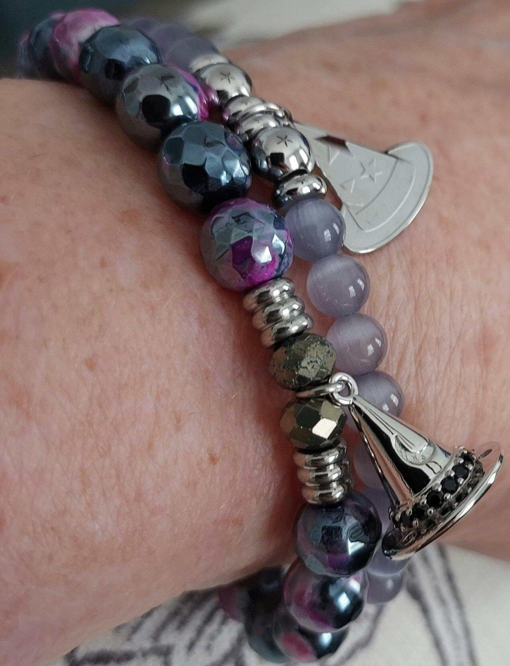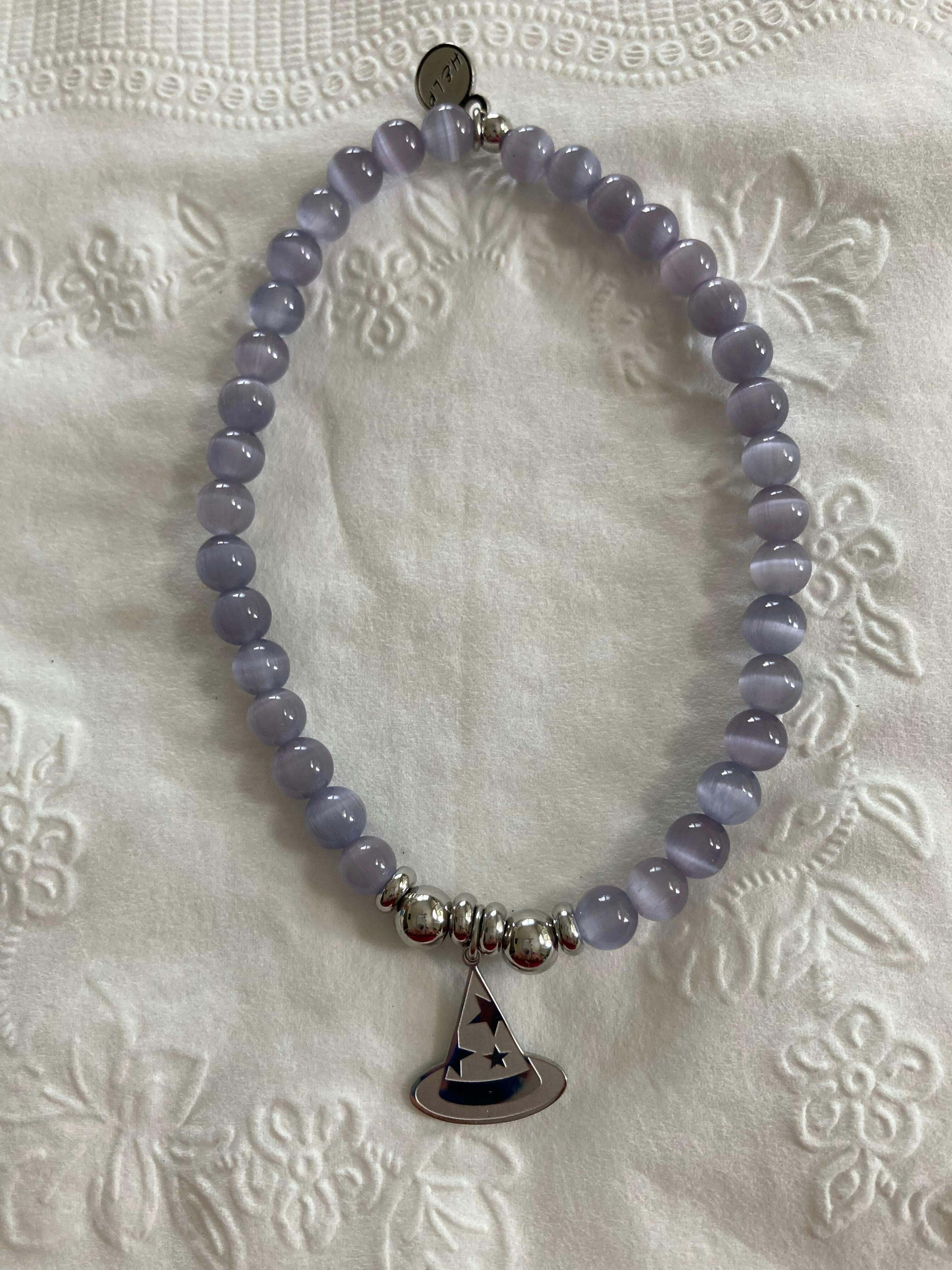 Witch Hat Charm with Purple Cats Eye Charity Bracelet